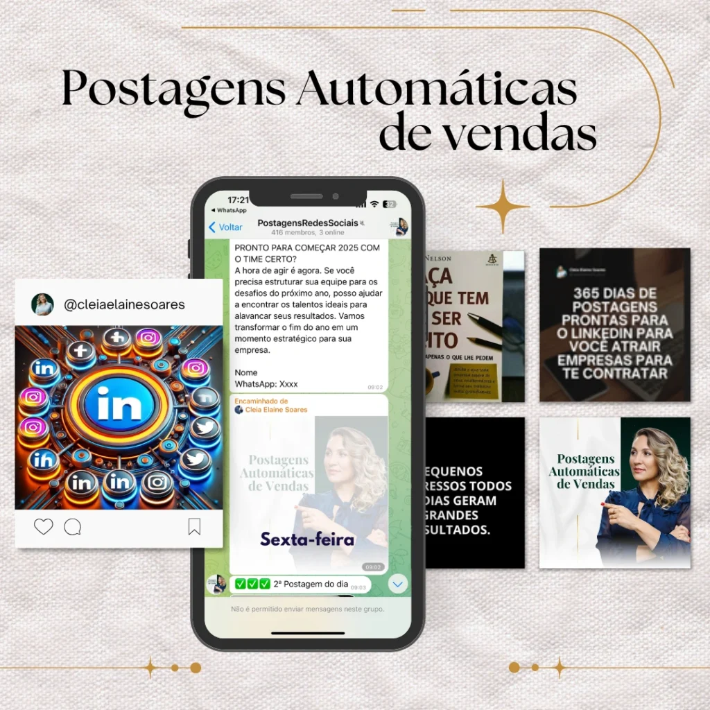 365 dias de postagens prontas para LinkedIn, pensadas para te posicionar, atrair empresas e mostrar sua autoridade como recrutadora mesmo sem saber o que escrever.